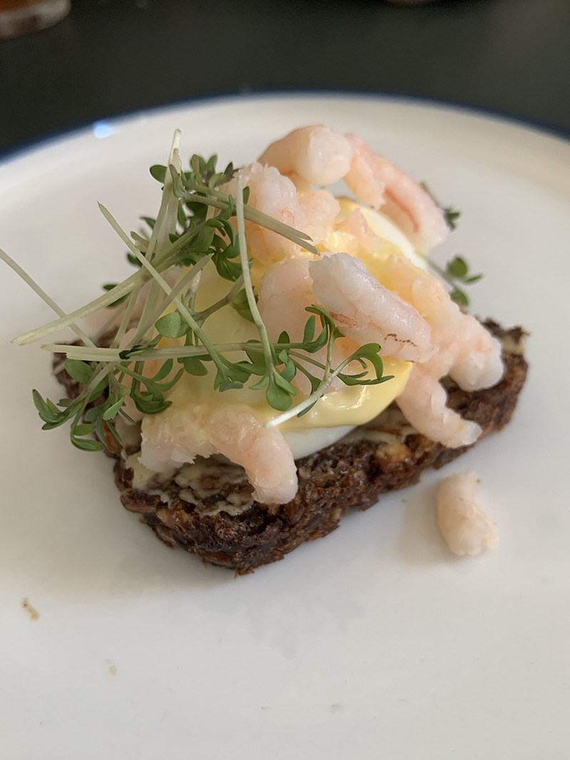 The third stop was the Gotdfork Restaurant. A charming place that has a garden in the middle and uses all of what they grow the drinks and food. I ate half of a Danish smørrebrød on rye bread which is the staple food of many homes. Served many ways, this smørrebrød had a hard boiled egg, cooked bay shrimp and mayo dressing topped with lovely greens. The Danish only serve one slice of rye bread since the bread is very dense and this sandwich is supposed to be eaten by hand. I would also imagine that the fillings would squeeze right out if served as a typical sandwich. Apparently, the Danish eat A LOT of rye bread – almost 40 kilos a year per person.